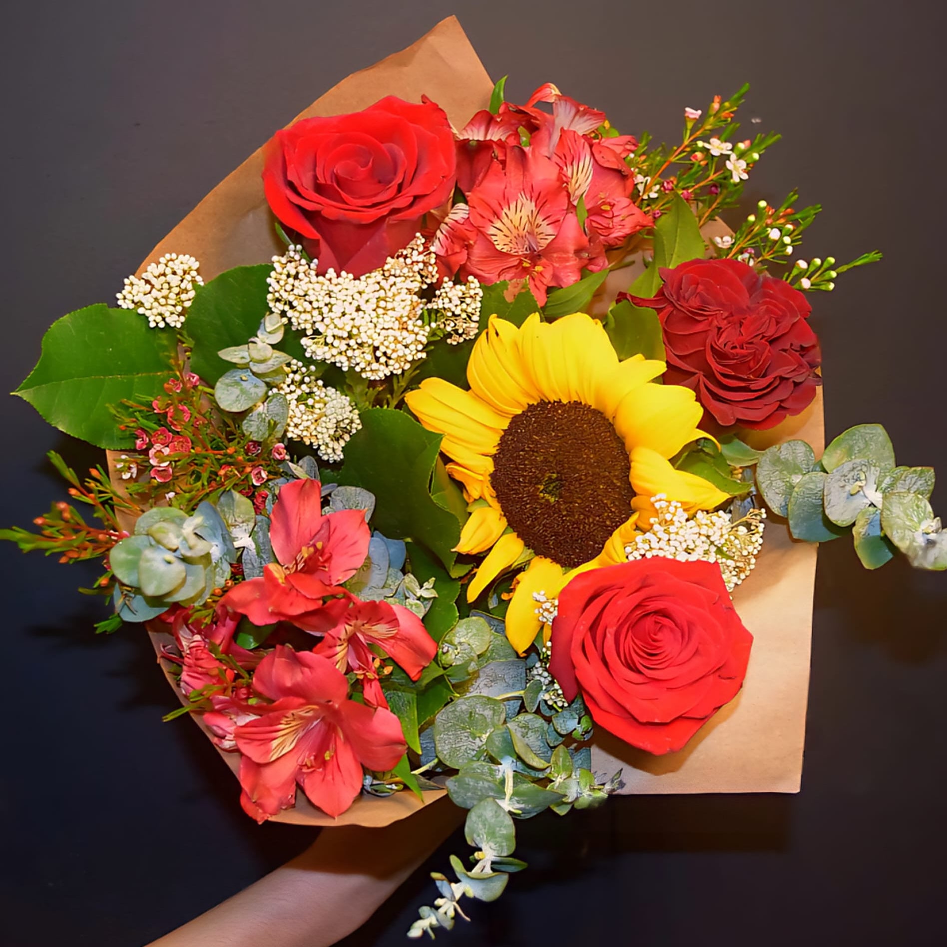 Soft, petite bouquets that say “I’m thinking of you.” Think: mini arrangements with 10–15 stems, delicate textures, seasonal fillers, and pastel accents.